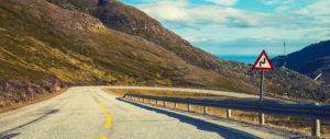 Driving a car on mountain road. Nature Norway. Polar circle. The